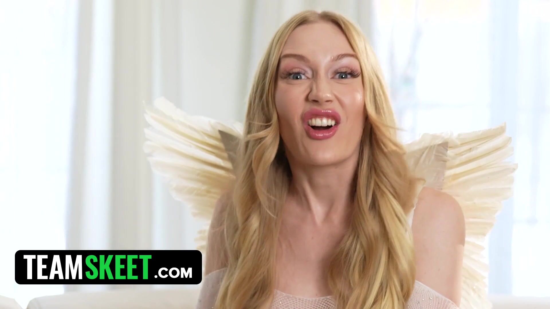 Amazing Blonde In Angel Costume Emma Starletto In Interview Before Cock