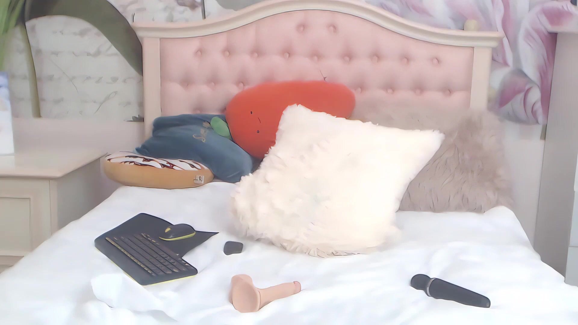 Such a cutie with her hair band and glasses. She spreads and lifts her legs for dildo and vibrator play!