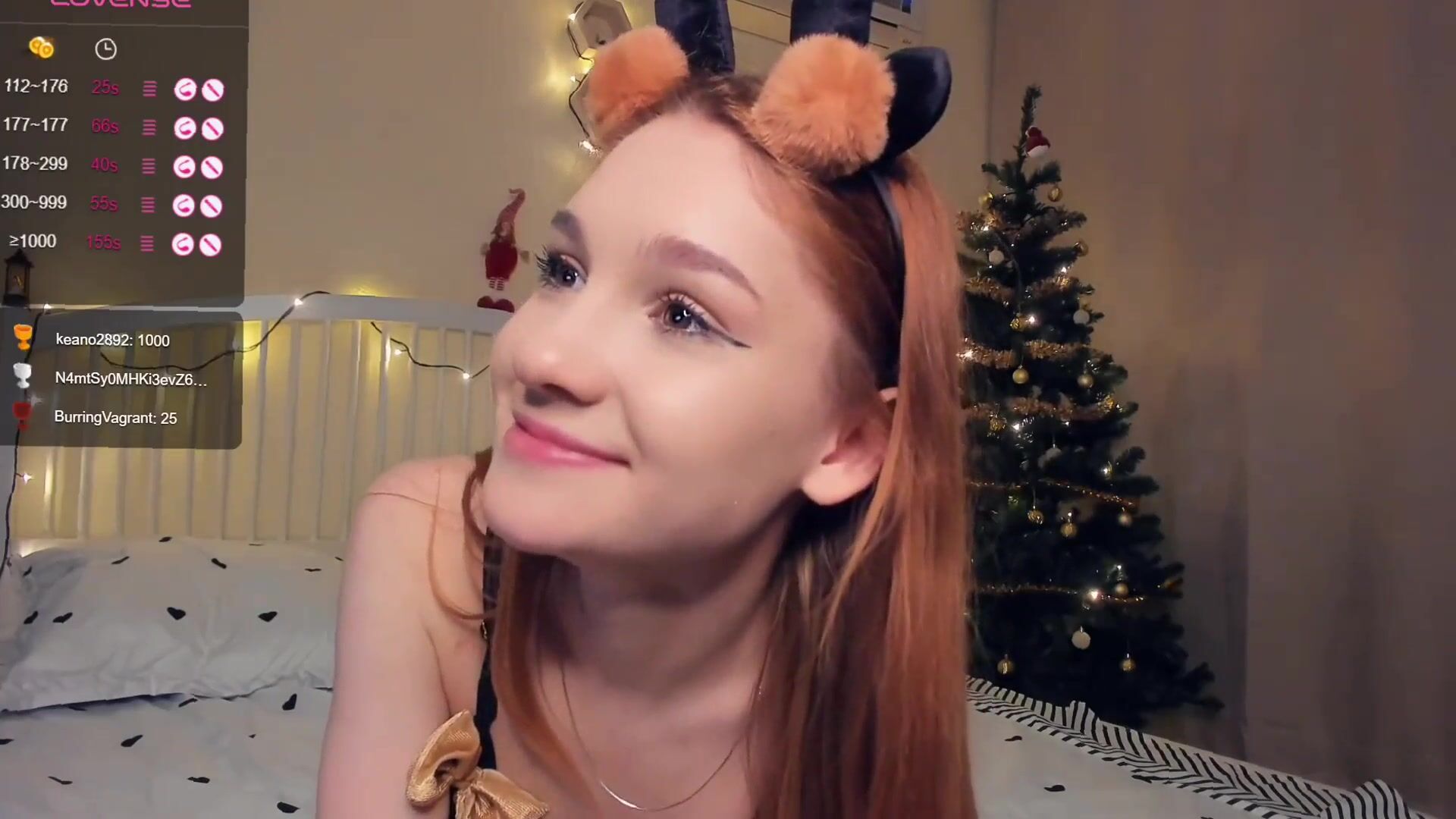 Cute teen camgirl wearing furry lingerie poses on bed
