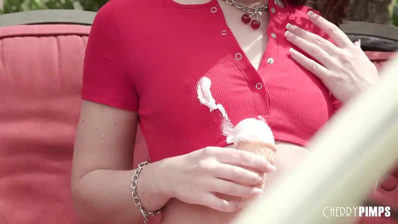 Cherrypimps: Liz Jordan Dribbles Ice Cream on Her Perky Natural Tits