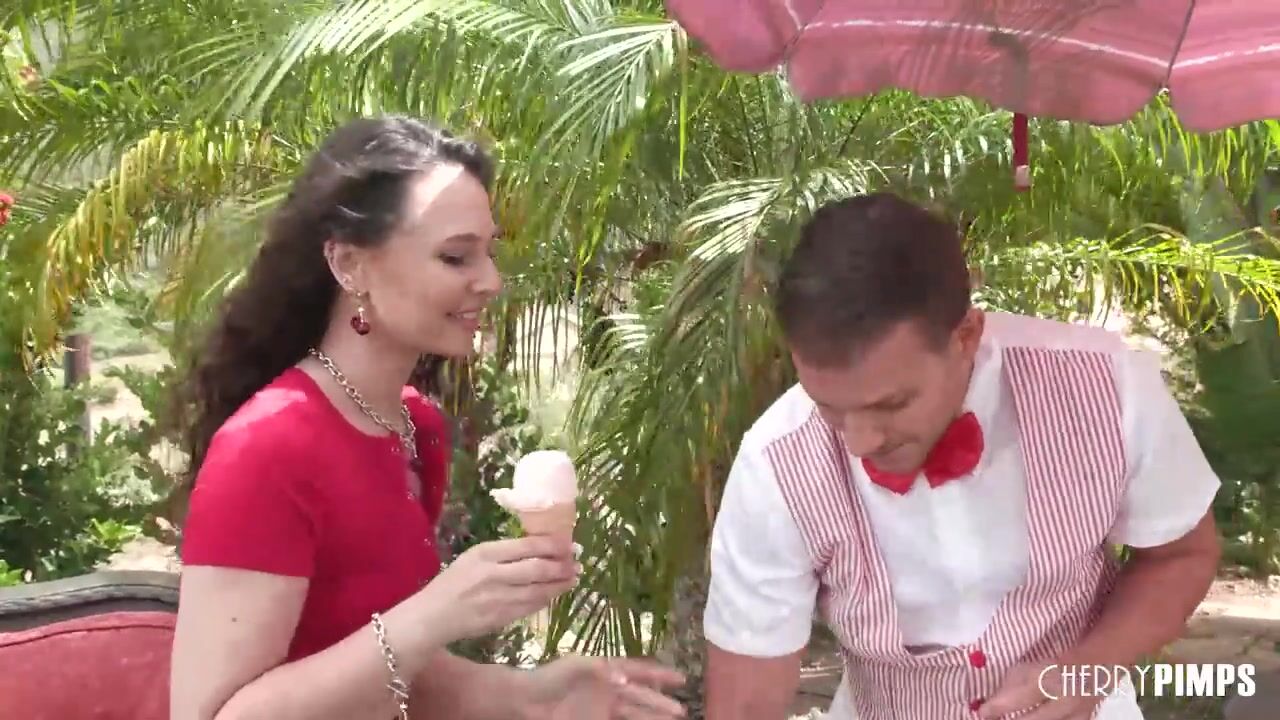 Liz Jordan drips ice cream over her natural tits while Codey Steele watches! She's making a mess and he can help her clean it up with his tongue and his cock! Who knew a rimming and doggystyle could help?